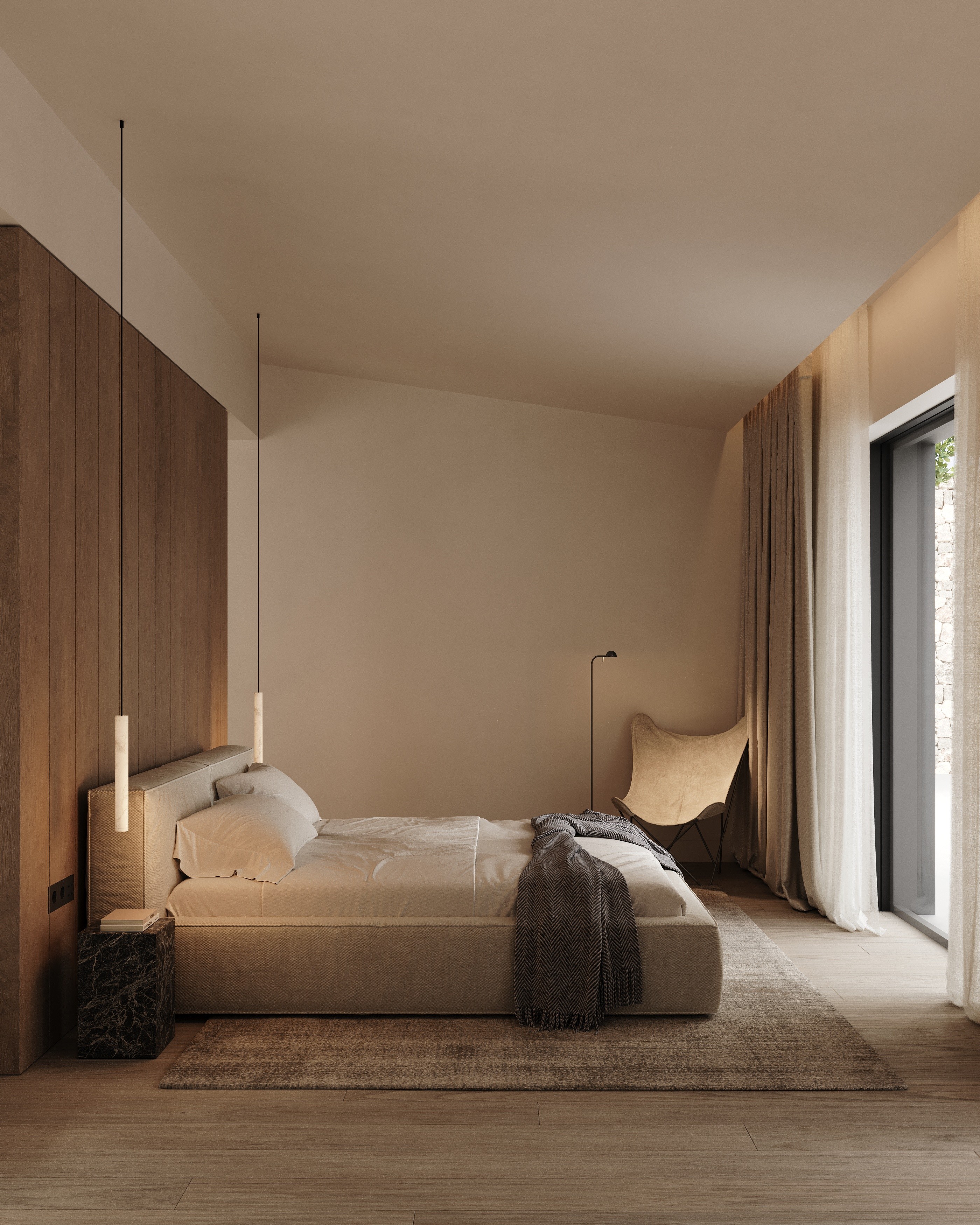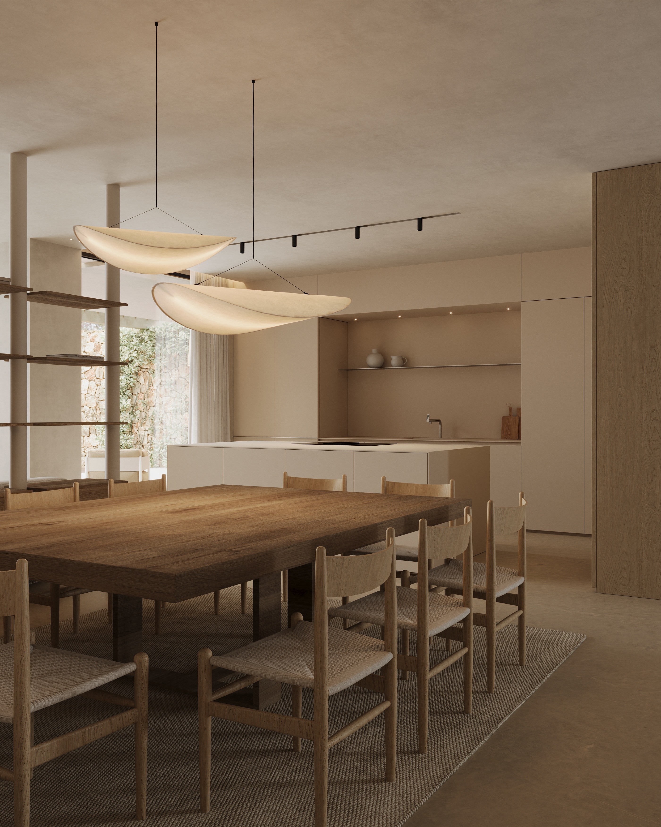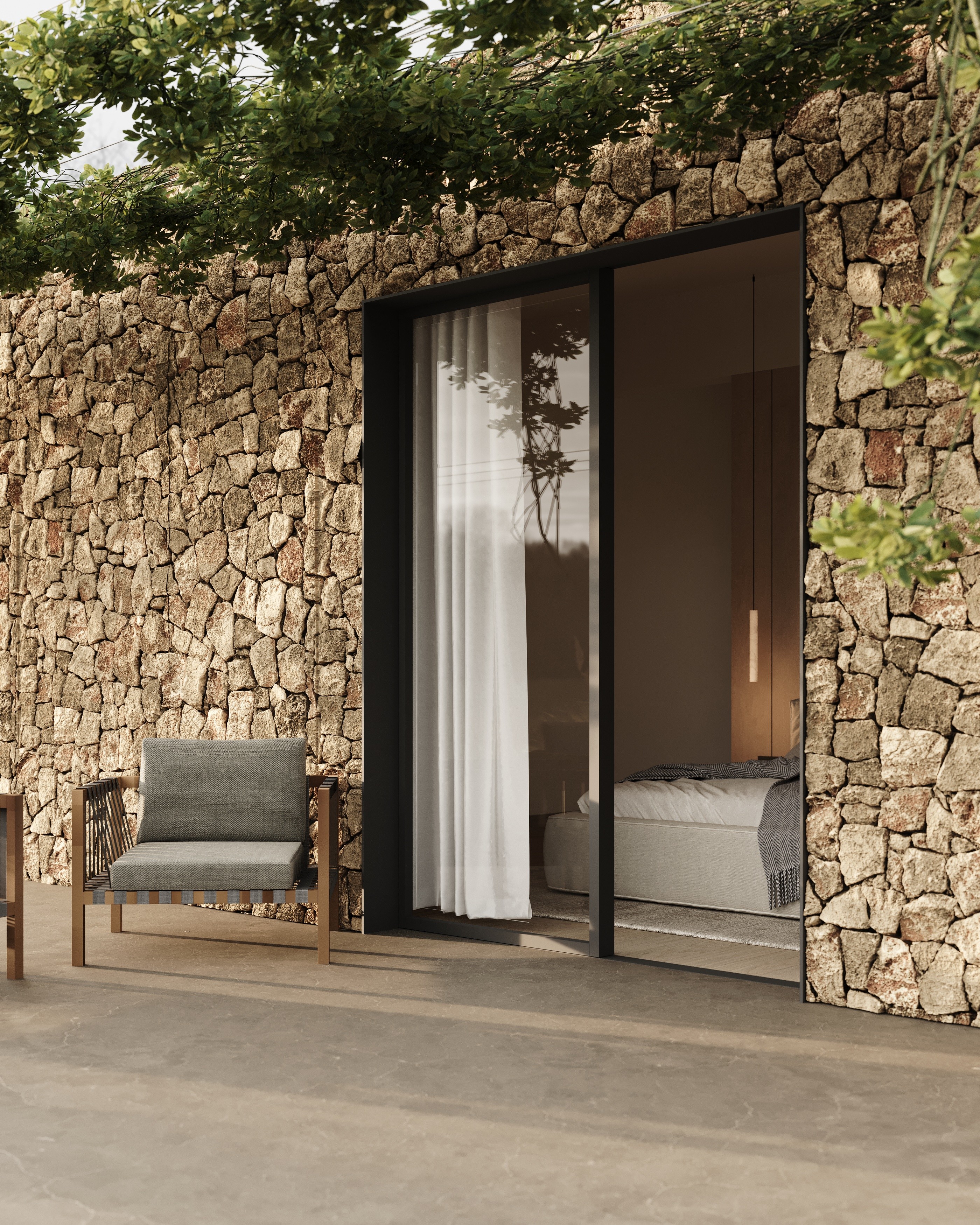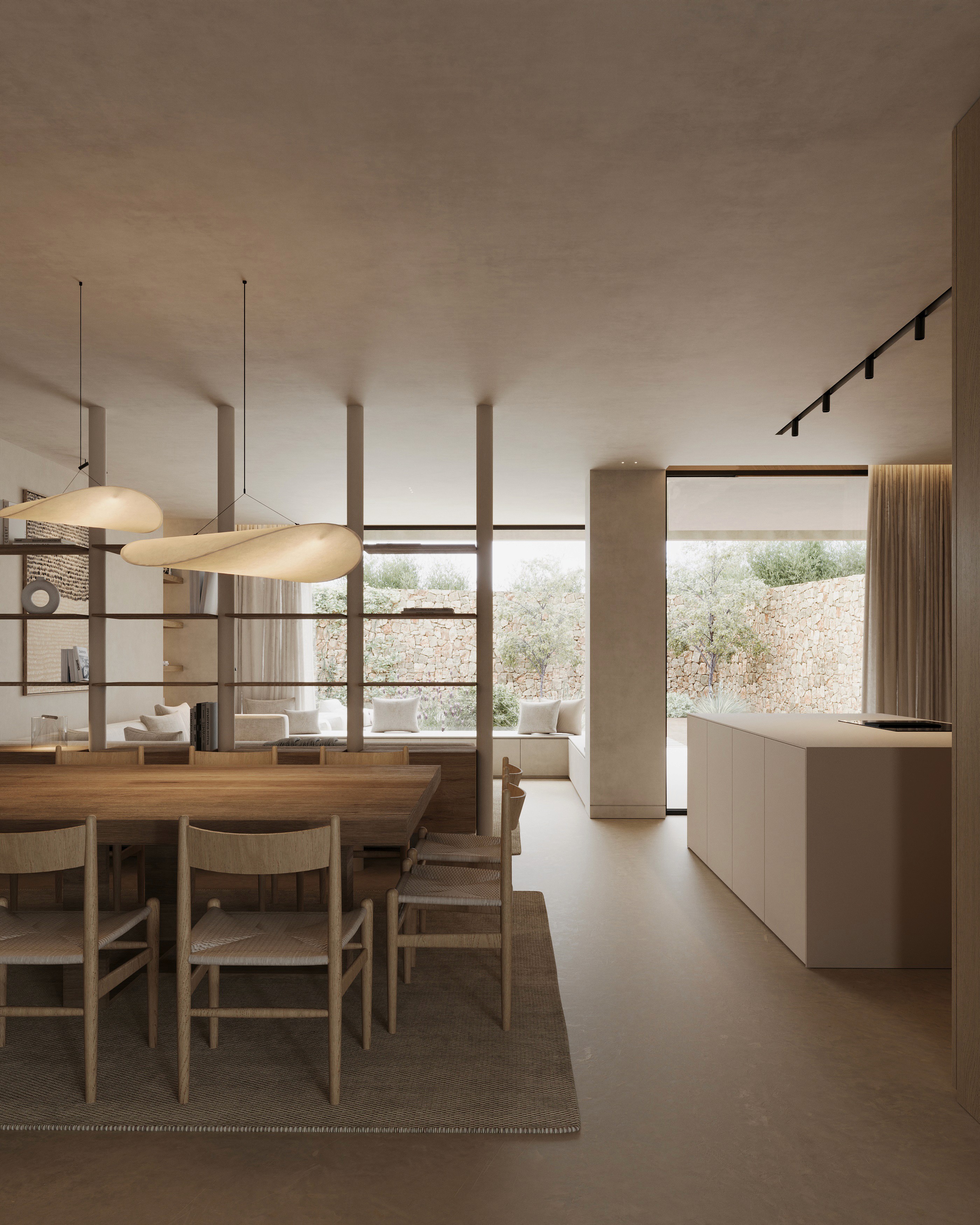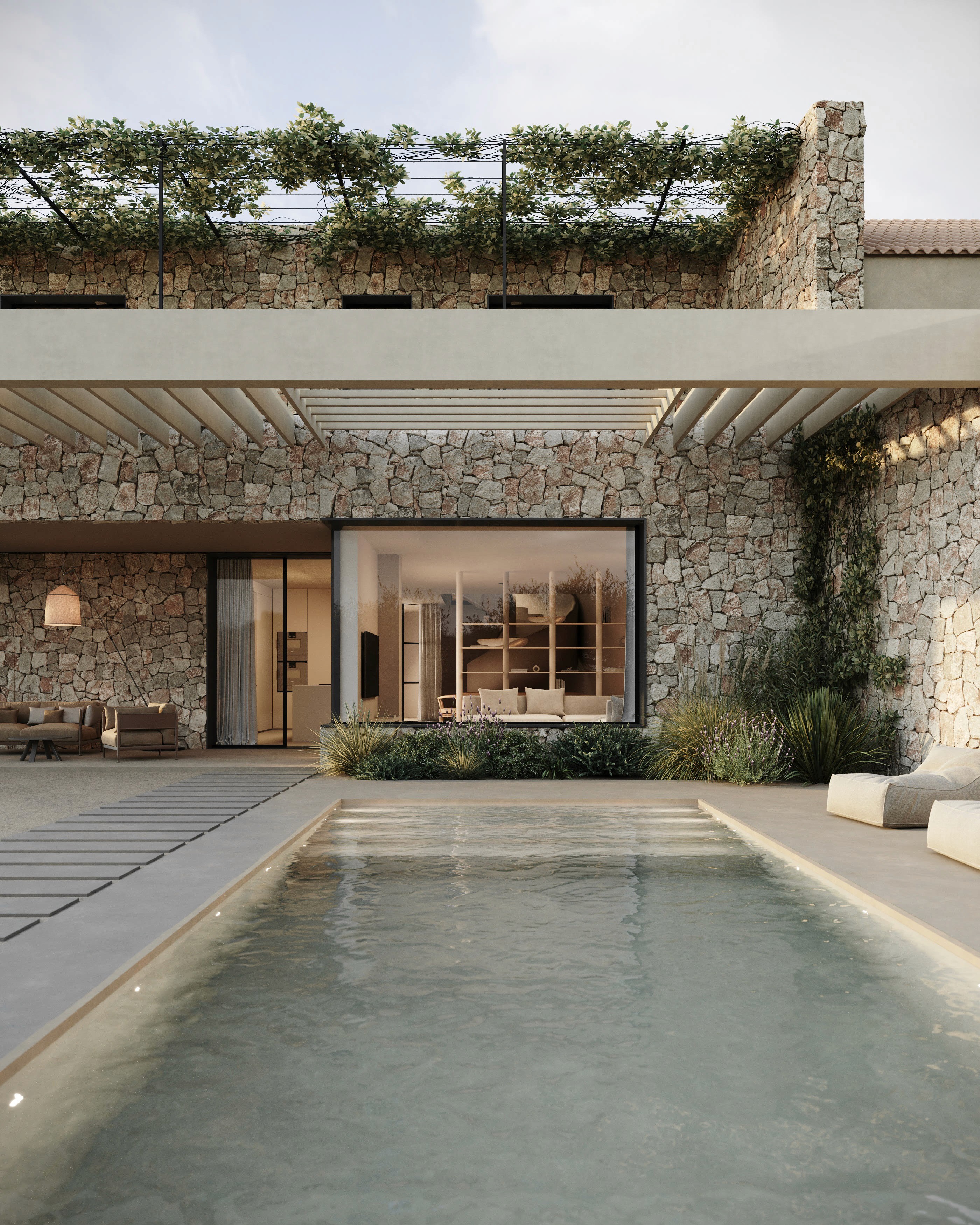 A single-family home that is conscious of its location, engaging in dialogue with the landscape and immediate context. The materials of the place define the architecture, establishing a direct connection with the surroundings and the memory of the site. The dwelling opens up to the outdoor patio, creating continuity between inside and outside, between private spaces and the nature that surrounds it. Each room is designed to offer comfort and versatility, generating moments of connection, rest, and contemplation. A house conceived to be lived in, enjoyed, and shared, where the interior and exterior spaces complement each other, and where materiality, light, and interior circulation create a rich and welcoming daily experience.
